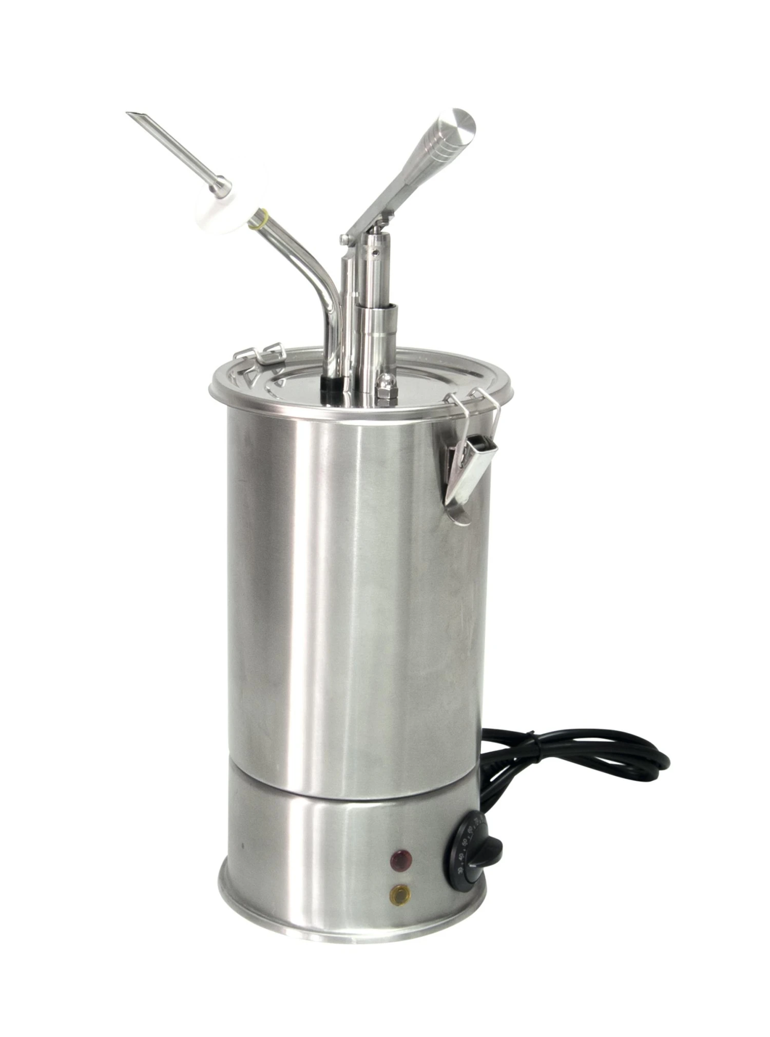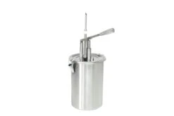 Füllkolben und Schüssel aus EdelstahlDosiermenge regulierbar: 0 – 15 gJedes Bauteil ist einfach zu reinigen.Inklusive 2 Deckel.nicht für Nuss-Nougat-Creme geeignet